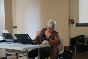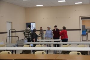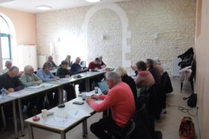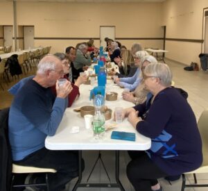 La pause-déjeuner est la bienvenue après ce faux-départ pour débriefer avec les copines. On a pu se venger sur les bons gâteaux préparés par les Rochelais.es ! Allez, faut remettre la marche avant : Claudine va vous conter le début de notre remontada !