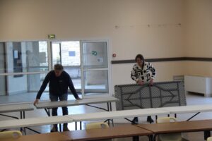 Un an après, jour pour jour, nous voila de retour pour un TH3 dans cette ville que nous aimons, tant. Il y a de bonnes habitudes que nous ne perdons pas. Pour ne pas partir dès potron-minet d’Angoulême, nous avons préféré y aller dans la journée de samedi, non pas pour pour piquer une tête comme en juillet (on en avait bien assez au-dessus de nous) mais pour aller manger tranquillou et prendre nos marques. Nous connaissions cette salle puisque nous y avions déjà été il y a quelques années pour un WE qui comprenait une réunion de bureau, un CA puis le lendemain, le Championnat départemental du 17. L’accueil a, comme d’habitude, été très chaleureux, les pâtisseries-maison et les boissons étaient si nombreuses qu’elles ont pu contenter tout le monde que ce soit lors du goûter et même en soirée, avant de partir. Claudine et Franck, les seuls représentants du club l’année passée, ont réussi à motiver Catherine et Christine de se joindre à eux cette année. L’année passée, nous étions 103 joueurs et cette année … plus que 63 joueurs ! Il est vrai que la multiplication des tournois dans le Comité ou ailleurs (Simultanés de France dans la semaine, TH2 la veille dans la même salle, TH2, le même jour, à Fontenay-Le-Comte, à 53 km de La Rochelle …) ou le fait que certains joueurs ne veulent plus disputer des TH3, jugés trop fatigants peuvent expliquer, en partie, une telle désaffection. Le plateau était quand même joli puisque … nous étions là avec Claudine 🙂 accompagnés par 3 joueurs classés 1A, parmi les 60 premiers français (Thierry Boisard, ancien champion de France, qui voulait prendre sa revanche de l’année passée, Jacques Fournier n°42 français, Frédéric Troubat, le local de l’étape, n°58 français), quelques SN2 (par exemple, Jean Dol, qui m’avait battu 3 semaines auparavant et Willou, qui m’avait battu … avec Hubert Basuiau l’année dernière 🙂 ), des SN3 aux dents longues et tous les autres, que je ne connaissais pas bien avant qu’ils me mettent un courant d’air dans la 1ère partie !