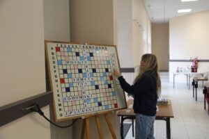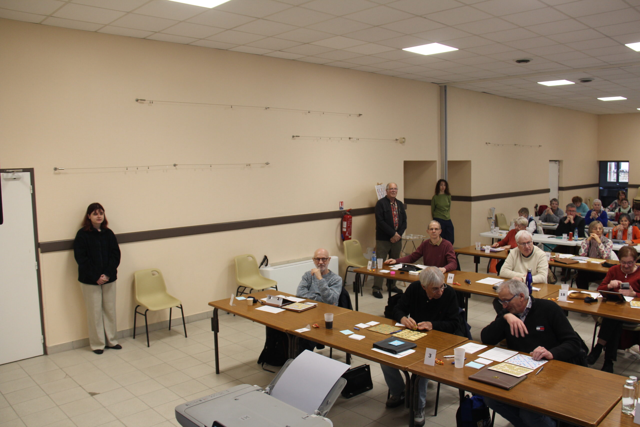… avec un R en joker (+ 8 sur DOMPTONS). Ceci SAPERAIT le moral de quasiment tous les joueurs et toutes les joueuses même celles qui étaient bien SANGLÉES (- 3 sur le top SÉNÉGALI, petit passereau africain). Quelle joueuse pouvait prétendre être FIÉROTE (scrabble unique) après une telle boucherie ? Allez, il est temps d’aller manger … après avoir bien mangé sauf Frédéric qui a frappé un grand coup en terminant à 12 points du top, devant Jean et Franck.