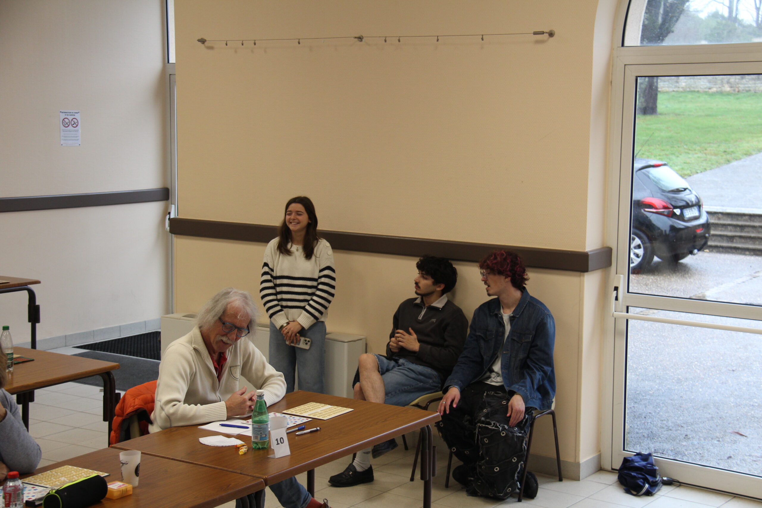 Heureusement, une équipe de joyeux drilles a fait souffler un vent de jeunesse qui a apporté une bonne humeur communicative et surtout a permis d’apporter à l’équipe organisatrice (membres du club et du bureau du Comité) un soutien, sans lequel, soyons clairs, nous aurions bien été dans l’impossibilité de faire le Championnat Régional à Hiersac. Alors, un grand merci à Norah, Lisa, Marilou, Odeline, Christopher et Adam. Rappelons que tous ces étudiants en BTS n’étaient nullement obligés de venir nous filer un coup de main mais qu’ils se sont inscrits pour aller au bout de leur projet, par pure bonté d’âme, sans calcul, avec une idée déjà bien ancrée du mot « bénévolat ». Bravo les jeunes (et les moins jeunes 🙂 ) pour cette belle leçon de civisme !