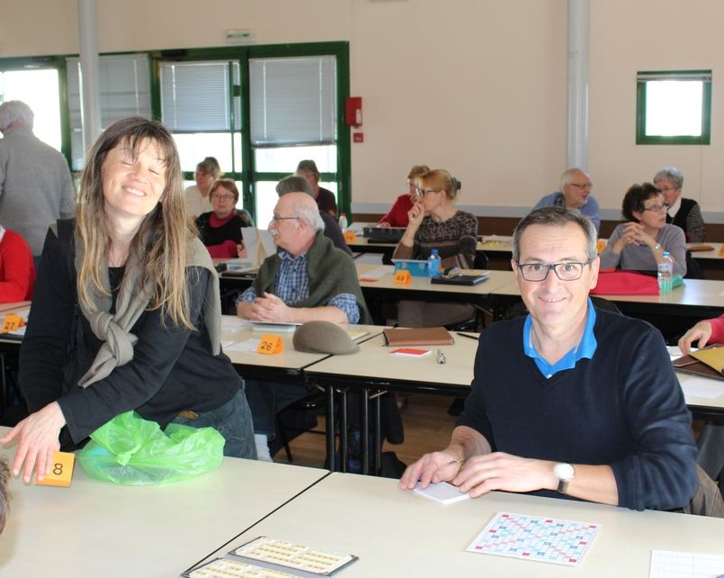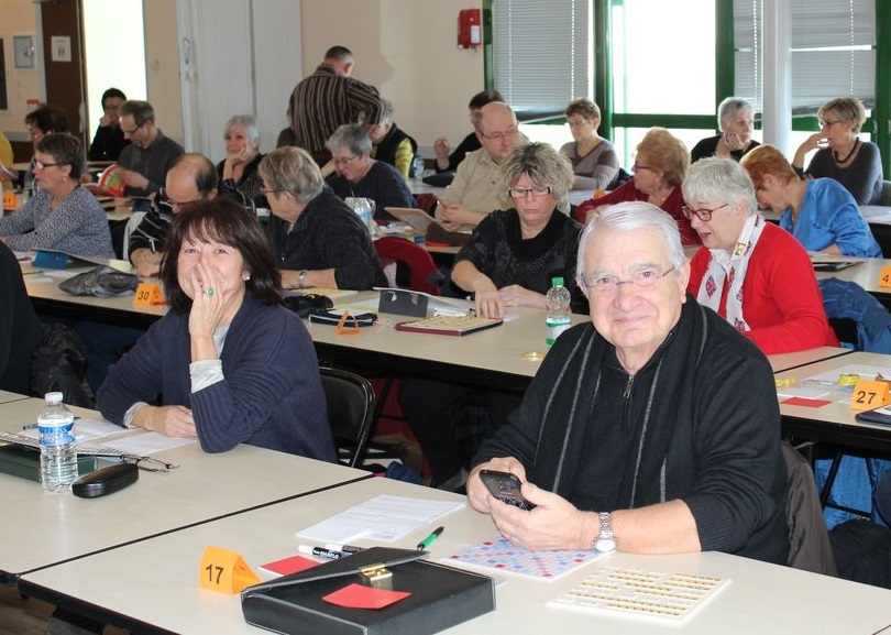 Coup 9 : Un massacre ! Franck, Jean, Arlette, Wilfrid, Hélène (parmi les premières tables) ne scrabblent pas et perdent une soixantaine de points en loupant KOTERENT sur un N, bien planqué. Franck a vu trop tard le mot et a eu le temps d’écrire « KOTERE » avant la 2ème sonnerie : c’est la soupe à la grimace mais ça ne fait que commencer ! Claude-Annie (qui prend la tête de la 3ème partie), Claudine, Raymonde et François remontent dans le classement.